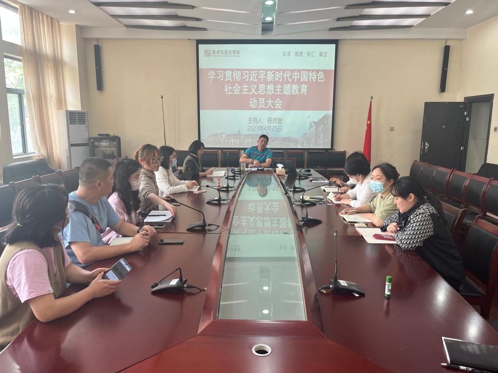 2023年4月25日下午5:30,美術與設計學院在鶴鳴南203會議室召開學習貫徹習近平新時代中國特色社會主義思想主題教育動員大會,會議由黨委書記楊虎智主持,學院班子成員、支部書記、行政干部參加會議。