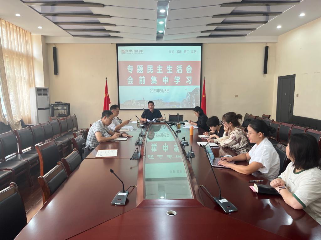 為進一步統(tǒng)一思想、深化認識,高質(zhì)量開好學習貫徹習近平新時代中國特色社會主義思想主題教育專題民主生活會,9月5日,美術(shù)與設(shè)計學院黨委理論學習中心組在主題教育理論學習的基礎(chǔ)上,組織開展主題教育專題民主生活會前集中學習。在深入學習領(lǐng)會習近平總書記關(guān)于黨的建設(shè)重要思想、關(guān)于嚴肅黨內(nèi)政治生活的重要講話等一系列重要講話、重要論述和黨內(nèi)法規(guī)的基礎(chǔ)上,結(jié)合學院工作實際進行交流研討。學院黨委書記楊虎智主持會議,學院黨委班子及各支部書記出席會議并發(fā)言。