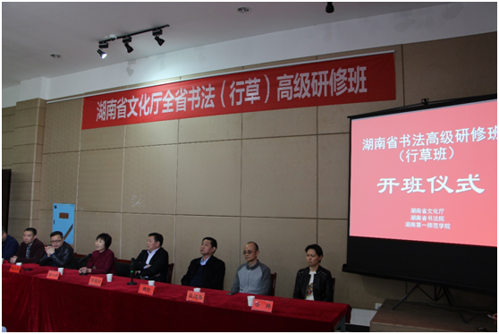 日前,由湖南省文化廳、湖南省書法院主辦,我院承辦的全省書法(行草)高研班在我校成功舉辦。湖南省文化廳副廳長、湖南省書法家協(xié)會(huì)主席鄢福初,我校校長童小嬌,湖南省藝術(shù)研究院院長魏儉,湖南省文化廳藝術(shù)處處長倪文華,湖南省書法院副院長谷瑋,我院院長范迎春、黨支部書記蘇美華以及由全省各市推薦的中書協(xié)會(huì)員和省書協(xié)會(huì)員共33名學(xué)員出席開班儀式。
