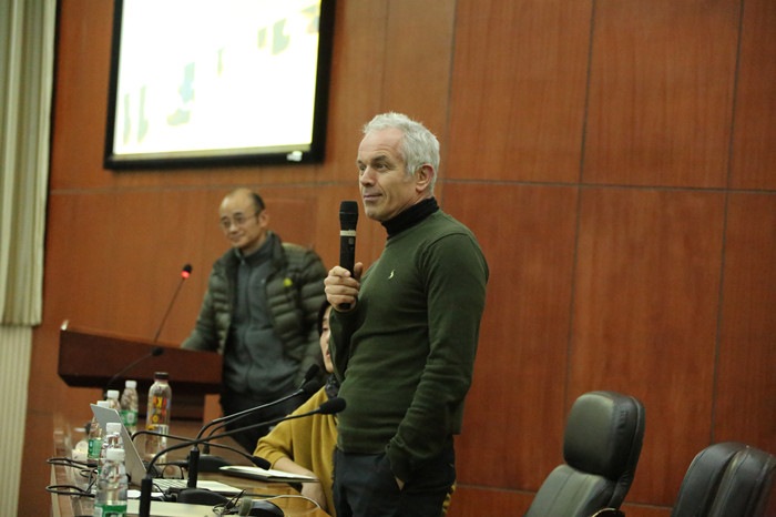 Hesse教授從設計的定義、設計的作用、設計與藝術的關系等方面解讀了設計的內(nèi)涵。他指出,設計與藝術沒有明確界限,屬于“大藝術”范疇,平面設計師應具有信息與身份的雙重屬性設計,同時,設計應具有特定的作用,通過設計讓事物變得更智能、更快樂、更美觀。此外,Hesse教授還結(jié)合其設計工作室完成的優(yōu)秀設計案例,為廣大師生展示了目前平面設計的前沿方向和趨勢。在互動環(huán)節(jié),在座師生踴躍發(fā)言,就“廣告與公眾的關系”“優(yōu)秀設計的重要因素”等問題與Hesse教授進行了深入探討。