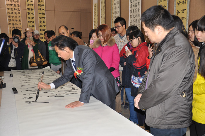 最后,安先生還與我院的書法老師一起開展了創(chuàng)作交流筆會(huì)。安先生即興創(chuàng)作了毛澤東詩詞書法長卷,我院蘇美華書記、舒克斌副書記、王佳寧博士也創(chuàng)作了自己的書法作品進(jìn)行探討與交流。