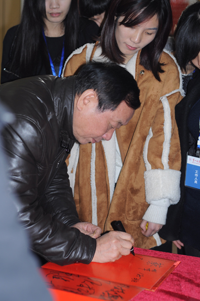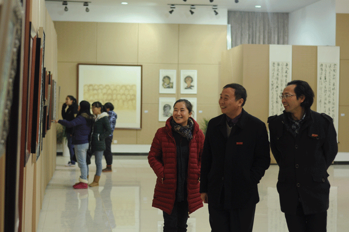 12月22日,我系籌辦的“紀(jì)念偉人毛澤東誕辰120周年、求學(xué)一師100周年、一師建校110周年”師生美術(shù)作品展在藝術(shù)樓美術(shù)館開(kāi)幕,眾多畢業(yè)校友和學(xué)校領(lǐng)導(dǎo)、師生前往參觀并留言。 此次我系“三慶”作品展共展出師生作品200多件,涵蓋繪畫(huà)、設(shè)計(jì)、書(shū)法、剪紙等多個(gè)藝術(shù)門(mén)類,其中一樓展覽館集中展示教師作品,二樓櫥窗展示學(xué)生書(shū)法作品,三樓櫥窗展示學(xué)生設(shè)計(jì)作品,四樓櫥窗展示學(xué)生油畫(huà)、國(guó)畫(huà)作品。許多作品以“校慶”、“紀(jì)念偉人毛澤東”為主題,如系副主任曾小紅的油畫(huà)《千年學(xué)府》、系總支副書(shū)記舒克斌的書(shū)法《沁園春·長(zhǎng)沙》、易鴿老師的木刻版畫(huà)《毛澤東畫(huà)像系列》、汪崟老師的油畫(huà)《一師校園》,以及學(xué)生周聰?shù)膰?guó)畫(huà)《一師范》、吳琴的國(guó)畫(huà)《一師》和劉亞云、唐巧玲、彭倩蘭的木刻版畫(huà)《毛澤東與青年革命家》、《毛澤東與周恩來(lái)》、《毛澤東父子》等,以各自獨(dú)特的表現(xiàn)手法,展示了一代偉人的風(fēng)采和一師深厚的文化底蘊(yùn),激起了參觀者對(duì)偉大校友毛澤東的崇敬和懷念,對(duì)偉人搖籃的無(wú)限熱愛(ài)。