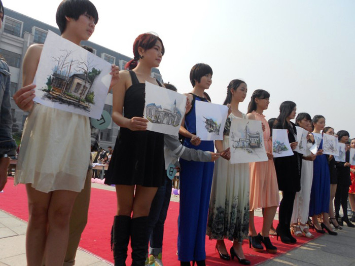 現(xiàn)場手繪的一師校園一角作品展示