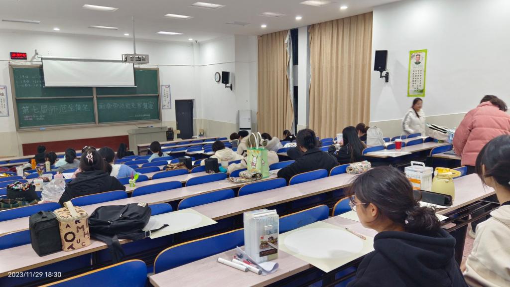 本次競賽于2023年上學(xué)期啟動,11月在各學(xué)院初賽選拔出復(fù)賽選手后,11月29日晚在美術(shù)與設(shè)計(jì)學(xué)院鶴鳴樓111教室舉辦了簡筆畫主題創(chuàng)作現(xiàn)場復(fù)賽,來自文學(xué)與新聞傳播學(xué)院、數(shù)學(xué)與統(tǒng)計(jì)學(xué)院、教育學(xué)院、初等教育學(xué)院、外國語學(xué)院、物理與化學(xué)學(xué)院、馬克思主義學(xué)院、音樂舞蹈學(xué)院、美術(shù)與設(shè)計(jì)學(xué)院的37名復(fù)賽選手全身心的投入于創(chuàng)作中。
