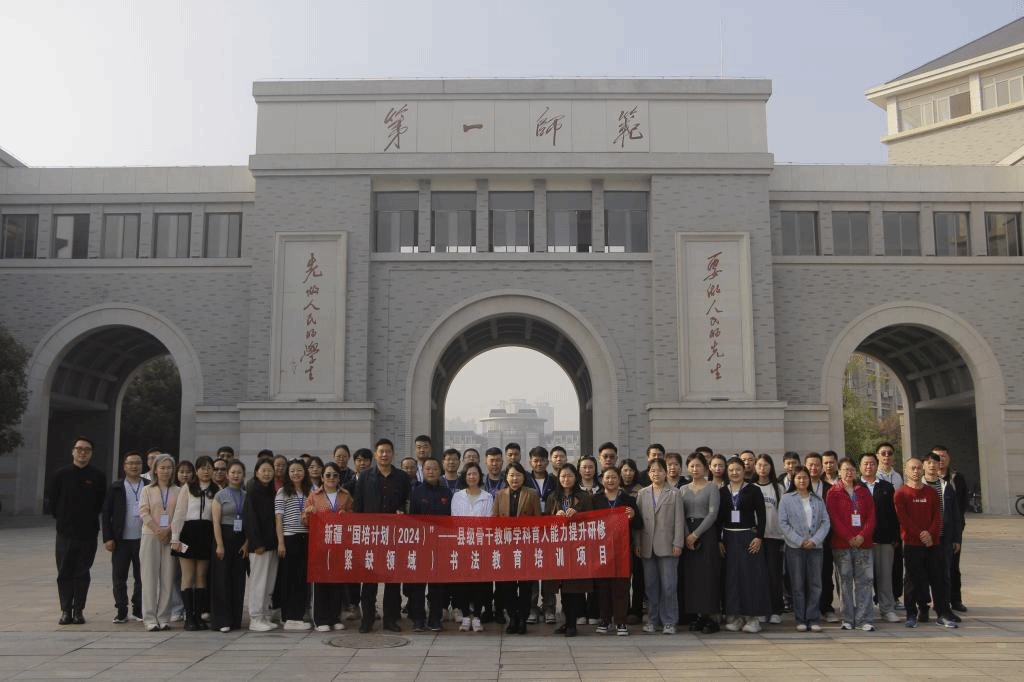 2024年11月13日上午,新疆維吾爾自治區(qū)“國培計劃(2024)”——縣級骨干教師學科育人能力提升研修(緊缺領(lǐng)域)書法教育培訓項目開班典禮在湖南第一師范學院鶴鳴南111舉行,本項目由湖南第一師范學院美術(shù)與設(shè)計學院承辦。美術(shù)與設(shè)計學院黨委書記楊虎智、副院長(主持行政工作)首席專家蔡惠萌、現(xiàn)代教育發(fā)展學院副院長劉煒、項目管理團隊和49位新疆中小學書法教育骨干教師共同出席此次典禮。典禮由美術(shù)與設(shè)計學院書法學系副主任王振凱主持。
