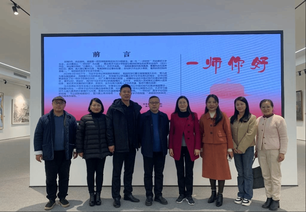 11月20日,湖南省文學(xué)藝術(shù)界聯(lián)合會黨組成員、副主席倪文華一行參觀湖南第一師范學(xué)院美術(shù)館,湖南第一師范學(xué)院副校長蔣蓉、現(xiàn)代教育發(fā)展學(xué)院院長鐘佩君、美術(shù)與設(shè)計學(xué)院黨委書記楊虎智、副院長(主持工作)蔡惠萌、院黨委副書記曾琳娜、美術(shù)館館長李楚智、美術(shù)學(xué)系副教授曾素艷、書法學(xué)系副主任王振凱陪同參觀。