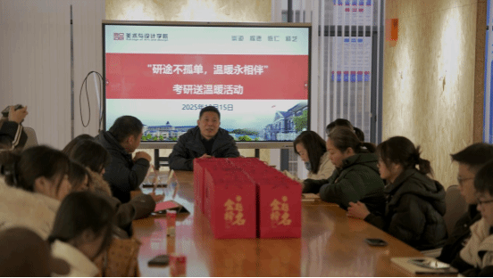 12 月 15 日中午,美術(shù)與設(shè)計學(xué)院 2025 年考研送溫暖活動在鶴鳴南二樓玻璃房開展。院黨委書記楊虎智、副院長(主持行政工作)蔡惠萌、院黨委副書記曾琳娜及學(xué)工辦全體輔導(dǎo)員,與在校考研學(xué)子齊聚沖刺關(guān)鍵節(jié)點。