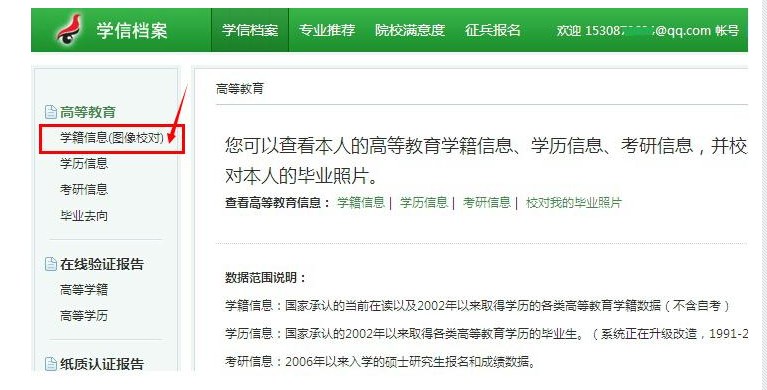 圖1 學(xué)信檔案頁面