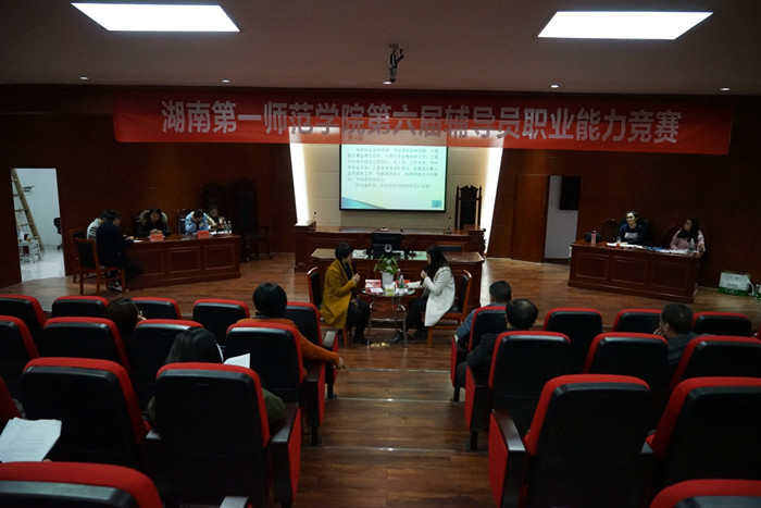為提升輔導(dǎo)員職業(yè)素養(yǎng)和專業(yè)技術(shù)水平,我校于2017年3月4日和3月11日分別舉辦了第六屆輔導(dǎo)員職業(yè)能力大賽初賽和決賽。本次大賽學(xué)校高度重視,校黨委書記彭小奇、校長童小嬌、副校長劉宇親臨比賽現(xiàn)場,與輔導(dǎo)員親切交流,為輔導(dǎo)員鼓舞志氣。大賽在校領(lǐng)導(dǎo)的關(guān)心指導(dǎo)下,在學(xué)生工作部(處)的精心組織下,在各學(xué)院黨總支的大力支持和全體輔導(dǎo)員老師的積極參與下,取得了圓滿成功。