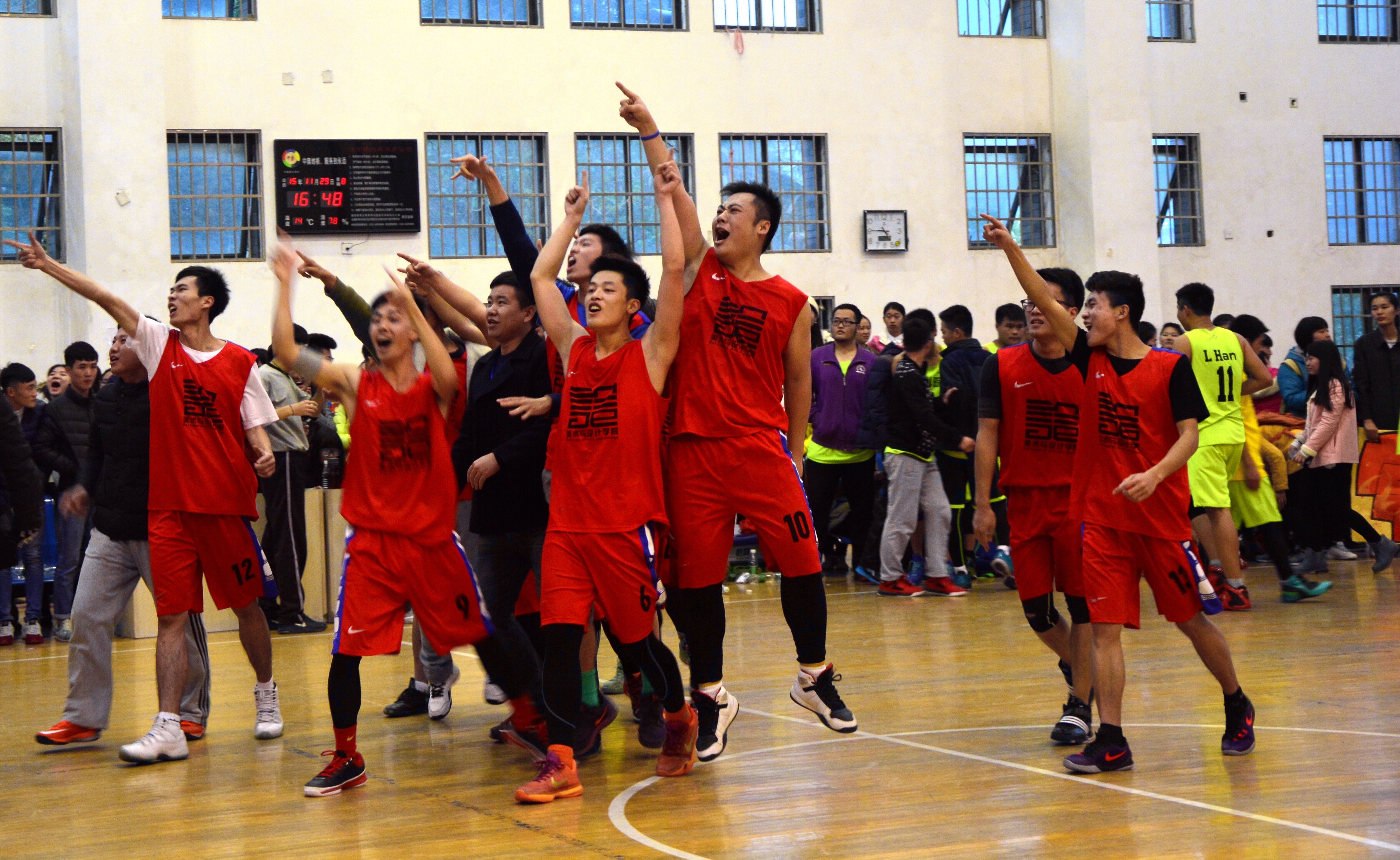 半場(chǎng)結(jié)束時(shí),我院領(lǐng)先。中場(chǎng)休息時(shí)教科院迅速調(diào)整戰(zhàn)術(shù),下半場(chǎng)開(kāi)始將比分逐漸拉近,比賽最后時(shí)刻,雙方只差一分,雙方教練員、隊(duì)員都異常緊張。終于,隨著裁判終場(chǎng)哨音響起。全場(chǎng)歡呼聲,我院隊(duì)員與教練相擁慶祝,比分定格在46:45,我院獲得籃球賽男籃冠軍。