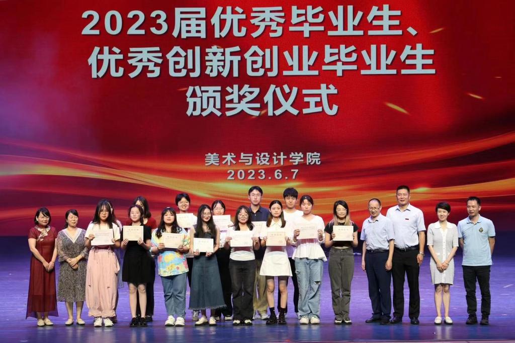 6月7日晚7點,美術與設計學院“情深藝久,后繪有期”歡送2023屆畢業(yè)生聯(lián)歡晚會在田漢大劇院正式演出。湖南第一師范學院學工部張福國部長、歐陽伶俐副部長、外國語學院戴建宇副書記、美術與設計學院黨委書記楊虎智、副院長(主持工作)蔡惠萌、副書記劉峰、副院長蔡曉曦、學工辦全體老師和專業(yè)教師代表及900余學生參加了晚會。晚會節(jié)目共分三個篇章:敘青春﹒一師時光,憶往昔﹒歲月如歌,踏征程﹒夢想啟航。通過歌曲、舞蹈、小品、走秀等形式多樣的節(jié)目將主題進行生動而立體的呈現(xiàn)。現(xiàn)場氣氛熱烈,與觀眾互動良好,三個篇章銜接順暢又互為鋪墊,整體效果好,傳遞了我院全體教師對2019級畢業(yè)生的美好祝福。晚會中途,還對省級和校級優(yōu)秀畢業(yè)生、優(yōu)秀創(chuàng)業(yè)畢業(yè)生進行了頒獎,旨在樹立先進榜樣,營造你爭我趕的向上風尚。這也是我院深入踐行我校辦學新理念及“三全育人”的成果體現(xiàn)。