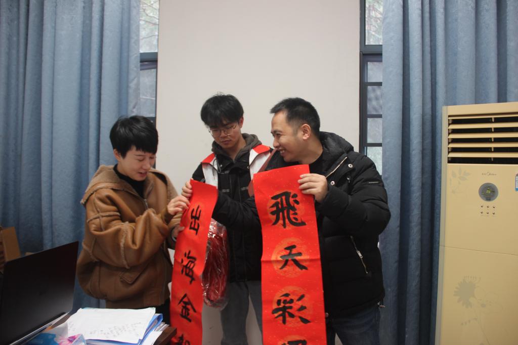 此次活動共有54名志愿者參與策劃與制作,共計(jì)書寫85副春聯(lián)。當(dāng)志愿者們將滿載心意的春聯(lián)送到老師們手中時,他們感慨道:“送春聯(lián),不僅傳遞了祝福,更像是一種無聲勝有聲的溫馨問候,它就像新春的喜帖,分享著新年的喜悅。”而老師們也在收到春聯(lián)的瞬間,感受到了來自志愿者們的溫暖與關(guān)懷,紛紛表示:“春節(jié)雖未至,但祝福已先行。在這寒冷的冬日里,你們的關(guān)懷讓我們的心倍感溫暖。”