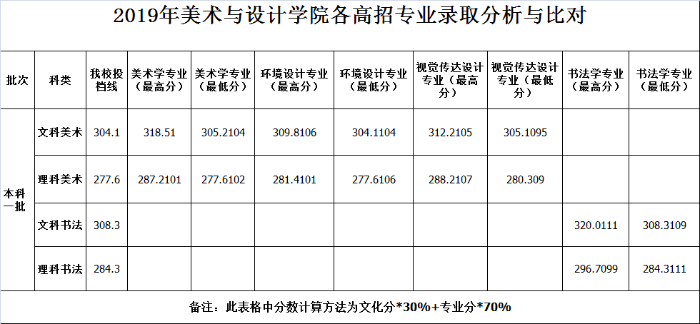 2019年美術(shù)與設(shè)計(jì)學(xué)院各高招專業(yè)錄取分析與比對(duì)