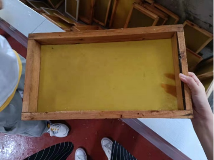 我們還參觀了灘頭古法造紙作坊,近距離觀賞師傅們造紙的全過程,我才明白平時在手邊隨手可見的薄薄一張宣紙竟然要經(jīng)歷那么多道工序,凝聚著師傅們多年來的心血。好玩的是我也親手參與了師傅們“撈紙”的過程,十分不易,需要把身子俯下去,慢慢拿一個類似竹簾子的工具從紙漿中撈出一張完整的紙張,稍有不慎紙張就會變得不平整或者是有殘缺需要重新打撈。作為書法專業(yè)生,加深了我對手邊工具的認(rèn)識,也加強了對書法專業(yè)的敬畏之心。