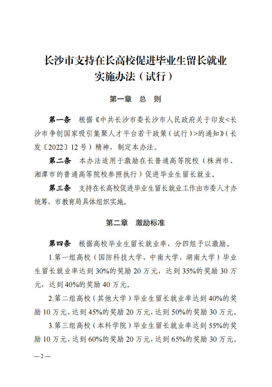 長(zhǎng)人才辦發(fā)【2022】12號(hào)文件——關(guān)于印發(fā)《長(zhǎng)沙市支持在長(zhǎng)高校促進(jìn)畢業(yè)生留長(zhǎng)就業(yè)實(shí)施辦法(試行)》的通知 發(fā)布時(shí)間:2022-07-06 作者: 瀏覽次數(shù):