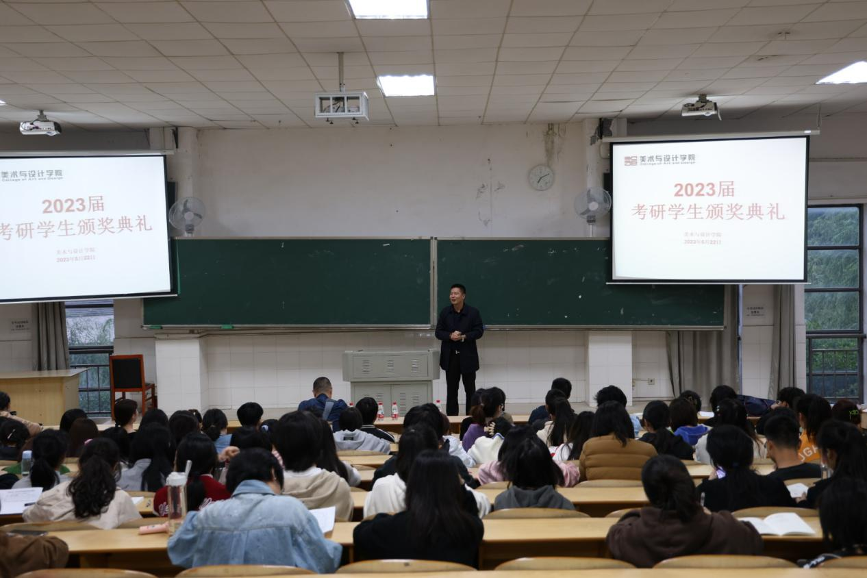 5月22日晚7點(diǎn),美術(shù)與設(shè)計(jì)學(xué)院在玉衡南201舉行2023屆考研學(xué)生頒獎(jiǎng)典禮暨考研經(jīng)驗(yàn)分享會(huì)。學(xué)院黨委書記楊虎智、副院長(zhǎng)(主持工作)蔡惠萌、黨委副書記劉峰、學(xué)工辦全體老師和近200名美院學(xué)生參加本次活動(dòng),由院學(xué)工辦主任武湘梅主持。