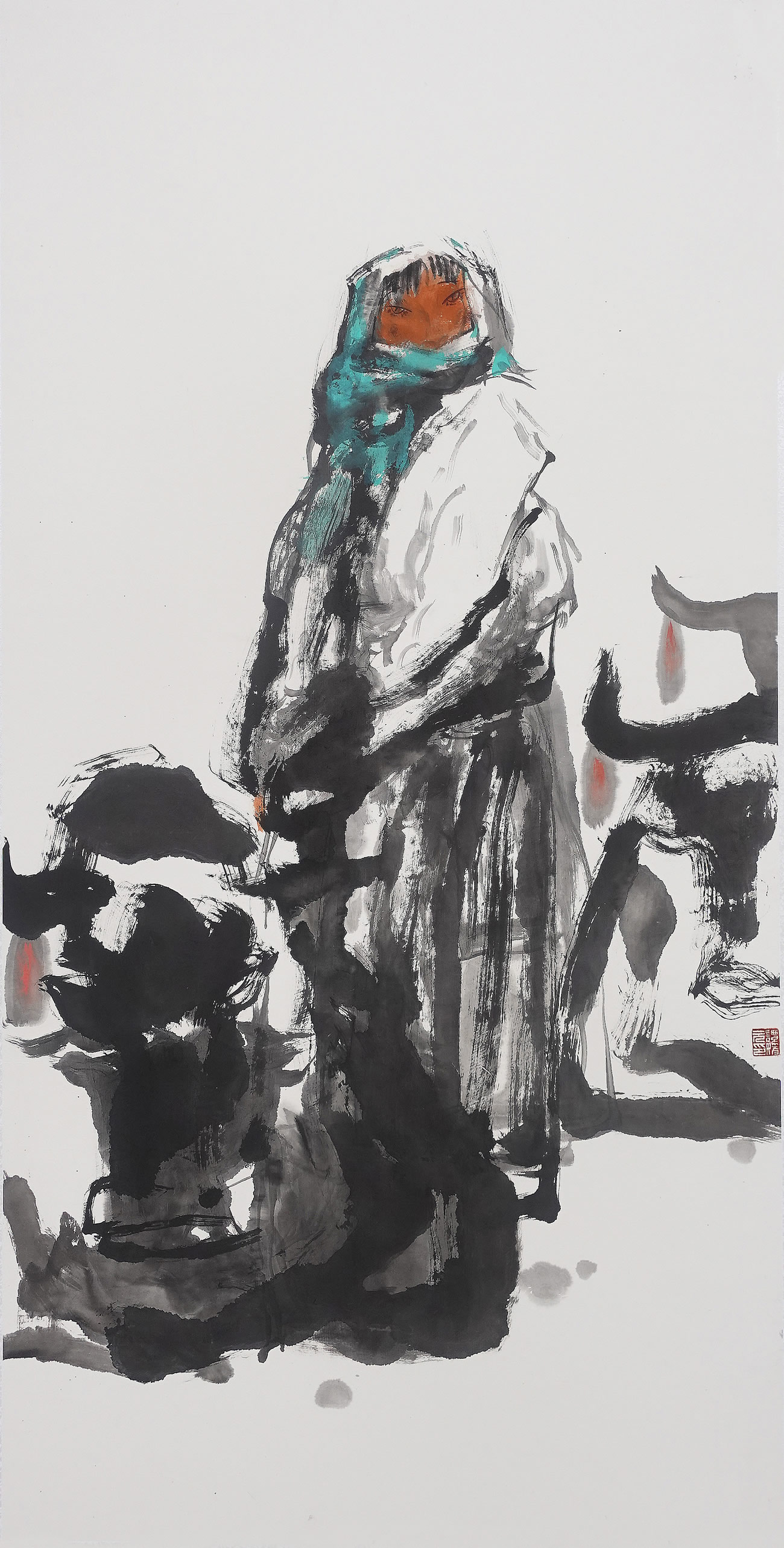譚媛元 中國(guó)畫 牧歸 138x69cm 2019