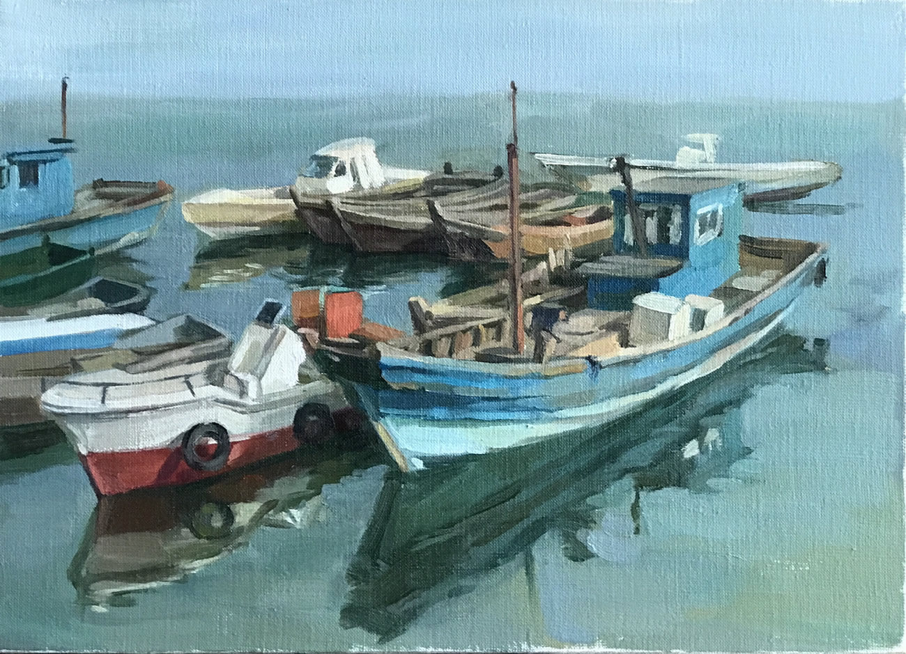 丁凱 油畫 嶗山泉嶺漁村 46x33cm 2019