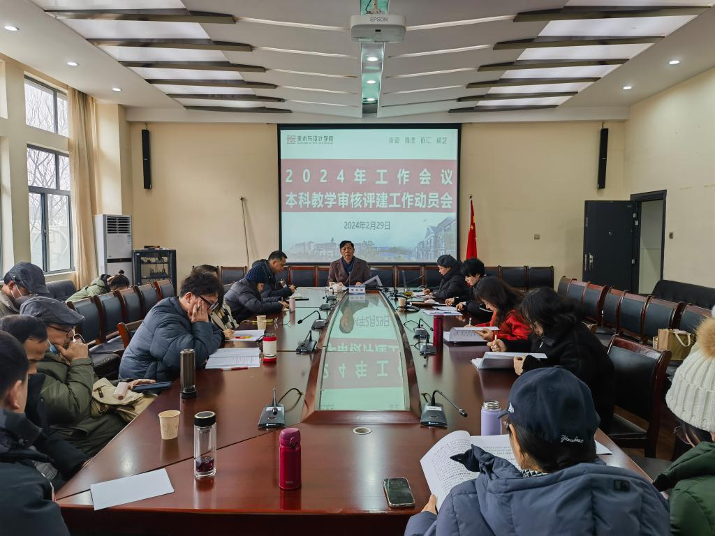 2024年2月29日下午,美術(shù)與設(shè)計(jì)學(xué)院在鶴鳴南203召開本科教學(xué)審核評(píng)建工作動(dòng)員會(huì),會(huì)議由副院長(zhǎng)(主持行政工作)蔡惠萌主持,校黨委副書記李克勤深入美設(shè)院指導(dǎo)工作,美設(shè)院全體教師參會(huì)。