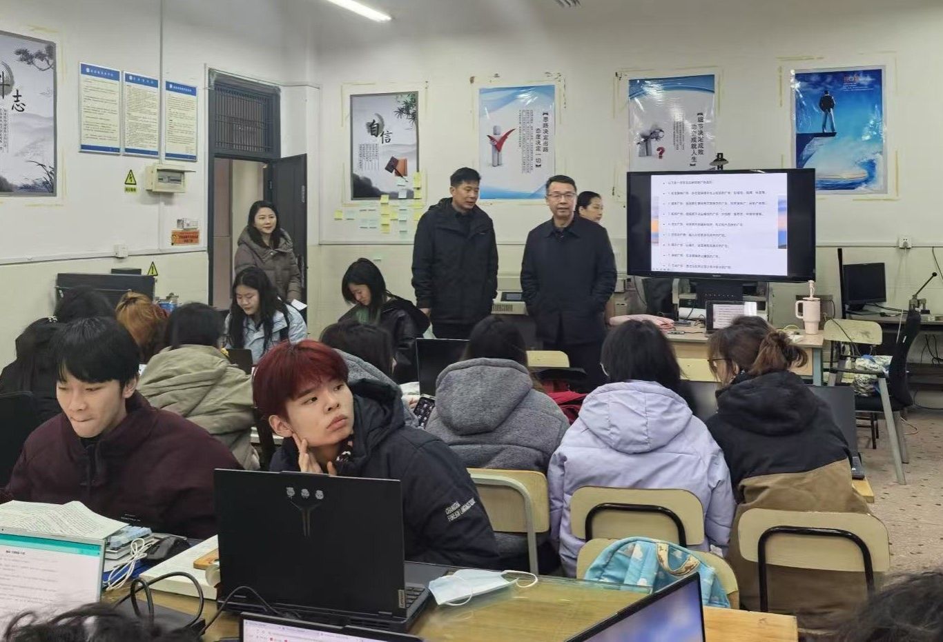 彭曉輝副校長一行對學院內所有教學區(qū)域進行了細致巡查,重點檢查了教師授課前的準備工作、學生的出勤情況、教學設備運行狀態(tài)等。總體來看,教師授課激情飽滿,學生聽課專注、互動積極。教學設備、實驗器材等運行正常,為教學工作提供有力保障。學院領導班子高度重視教學工作,開學前向全院師生多次強調教學管理、課堂紀律與教室衛(wèi)生等問題。
