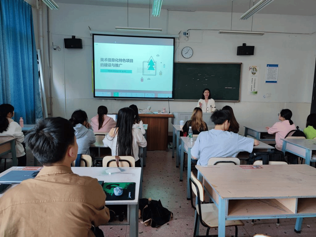 2023年4月1 0日和4月12日上午,長沙市高新區(qū)虹橋小學(xué)美術(shù)教研組長、區(qū)優(yōu)秀教育工作者曹思遠老師應(yīng)美術(shù)與設(shè)計學(xué)院邀請,在鶴鳴樓南棟311教室為2021級美術(shù)學(xué)學(xué)生開展主題為“美術(shù)信息化特色項目的建設(shè)與推廣”的講座。本次講座由陳夏麗老師主持。