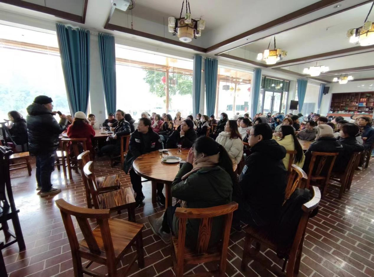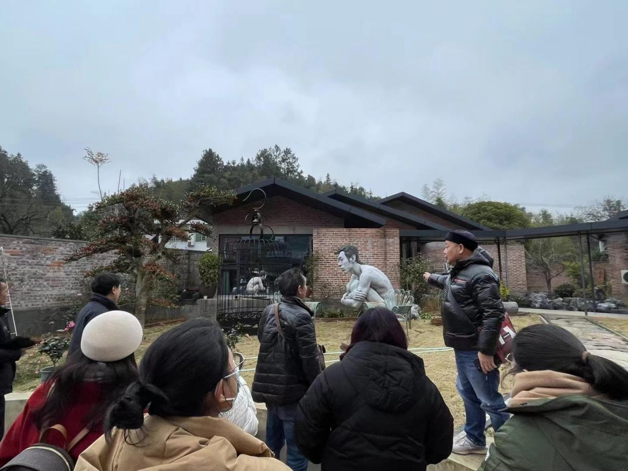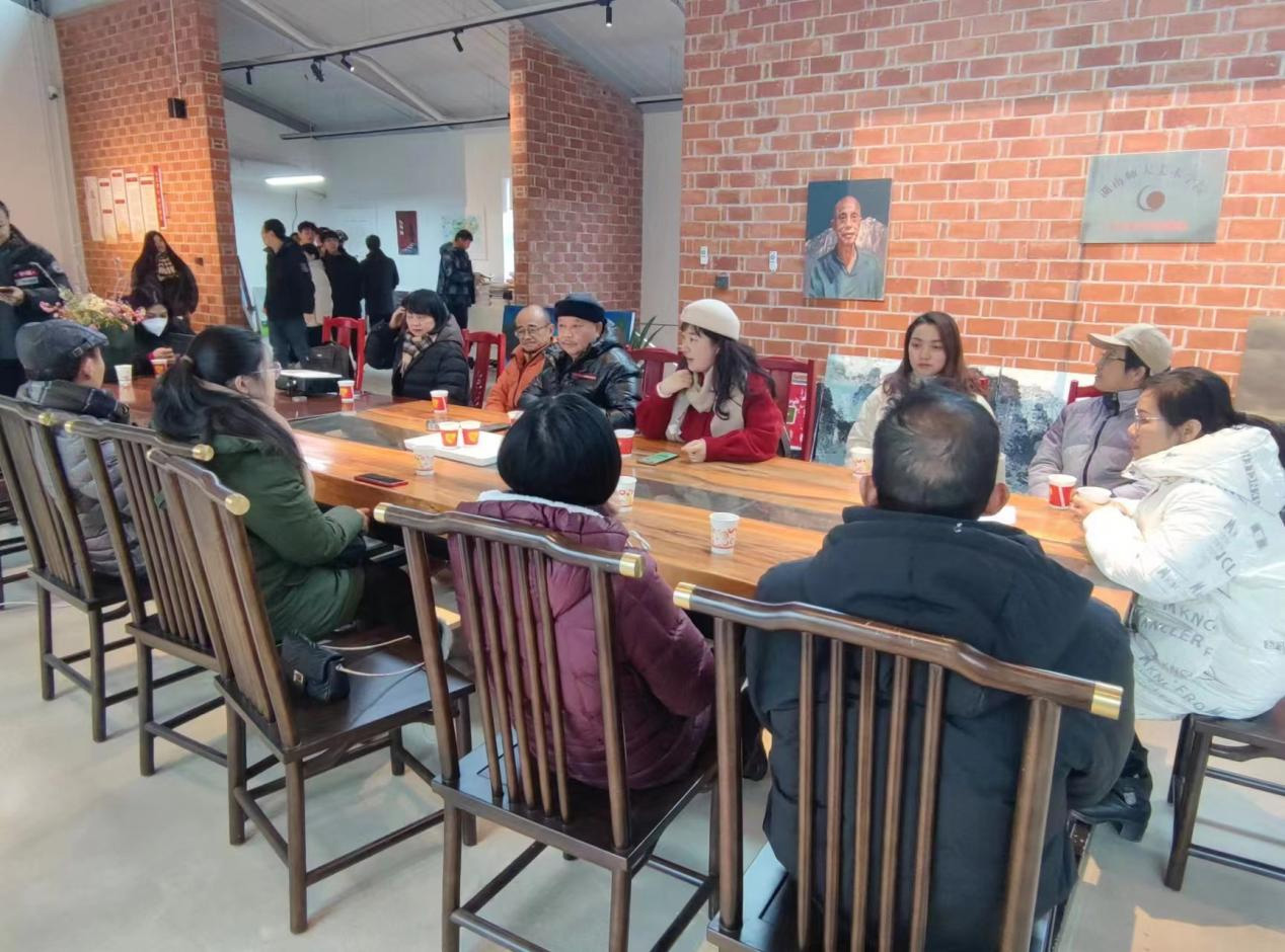 隨后,師生一同前往段江華鄉(xiāng)村美術(shù)館參觀。段江華鄉(xiāng)村美術(shù)館旨在打造成一個群眾藝術(shù)鑒賞的窗口,學(xué)生美育教學(xué)的基地,暢通文藝下鄉(xiāng)的橋梁和提供公用文化服務(wù)的平臺,是聚焦以美學(xué)賦能鄉(xiāng)村振興的成功范例。在美術(shù)館內(nèi),美術(shù)學(xué)系教師與段教授圍繞鄉(xiāng)村振興主題創(chuàng)作、如何利用寫生素材為創(chuàng)作做基礎(chǔ)、第十四屆全國美展創(chuàng)作建議和瀏陽美育研究四個議題展開了精彩學(xué)術(shù)研討,研討會由孫冰主任主持。在研討會上,范迎春教授講到,段教授在美術(shù)上的成就有目共睹,又是時代楷模,近期聚焦藝術(shù)賦能鄉(xiāng)村振興,帶動了雙江鎮(zhèn)的經(jīng)濟與影響力,探索藝術(shù)服務(wù)社會等問題。谷熾輝副教授展示了今年七月我院師生“三下鄉(xiāng)”鄉(xiāng)村振興文化藝術(shù)服務(wù)團到瀏陽市永和鎮(zhèn)中心完全小學(xué),開展暑期“三下鄉(xiāng)”社會實踐活動的情況,得到段教授和當(dāng)?shù)匦W(xué)校長高度贊揚。在座其他老師也針對議題進行了積極發(fā)言,與段老師展開探討。最后,蔡惠萌表示,段江華教授對于我院美術(shù)學(xué)系的專業(yè)建設(shè)、學(xué)科建設(shè)給予了很多指導(dǎo)與幫助,希望后續(xù)在第十四屆全國美展的準備以及教學(xué)、科研、創(chuàng)作和鄉(xiāng)村美育等方面得到段教授更多的支持與幫助。