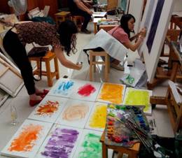 油畫教學(xué)實訓(xùn)室成立于2012年,隸屬于美術(shù)學(xué)實驗實訓(xùn)中心。目前,實訓(xùn)室設(shè)置于美術(shù)樓503室,使用面積約95平方米,實訓(xùn)儀器設(shè)備118余臺套,資產(chǎn)總額25.3萬余元。主要大型儀器設(shè)備有:專用油畫架、切角機、釘角機、角花機、油畫箱、電腦、液晶電視等。主要承擔(dān)美術(shù)學(xué)專業(yè)油畫材料研究、油畫靜物、油畫人物、油畫人體和油畫創(chuàng)作等課程的實訓(xùn)教學(xué)任務(wù),年均承擔(dān)7550實訓(xùn)人時數(shù)。