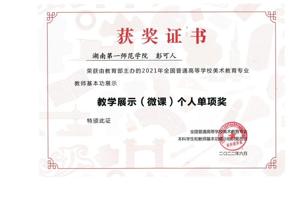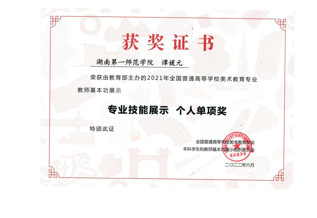 美術(shù)與設(shè)計學(xué)院高度重視,積極備賽,三位參賽教師均斬獲佳績,共獲五項個人大獎,我校以排名第八的成績獲得高校優(yōu)秀組織獎!其中譚媛元老師獲個人全能一等獎和專業(yè)能力單項獎、彭可人老師獲個人全能二等獎和教學(xué)展示單項獎、谷熾輝老師獲審美和人文素養(yǎng)展示單項獎!