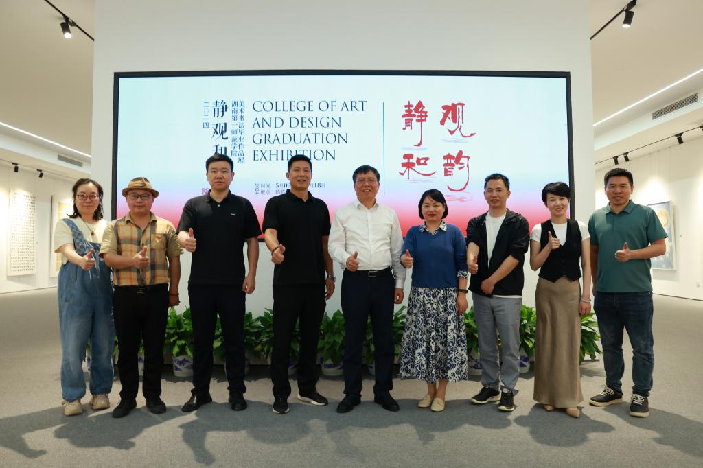 2024年5月14日,校黨委委員、校長胡穗教授深入美術與設計學院指導2024屆美術書法畢業(yè)作品展。美術與設計學院黨委書記楊虎智、副院長(主持工作)蔡惠萌、副書記劉峰、副院長蔡曉曦陪同觀展。