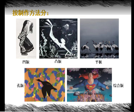 (1)欣賞歷年來優(yōu)秀的版畫課程教師范作及學生留校作業(yè)和獲獎入展作品。
