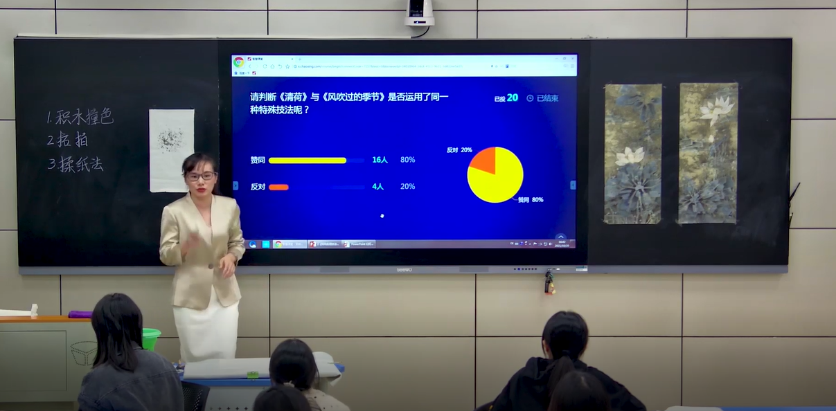 2、實踐知識線上早知道和線下具體案例實訓(xùn),可以讓學(xué)生不受時間和空間的限制,解決學(xué)習(xí)問題和優(yōu)化學(xué)習(xí)效果。靈活運(yùn)用線上線下的課程討論、師生互動、生生互動與互評,閉環(huán)重復(fù)的反思與實訓(xùn)習(xí)慣有效提升內(nèi)驅(qū)學(xué)習(xí)力,提升學(xué)生工筆花鳥畫課程教學(xué)和藝術(shù)創(chuàng)作的設(shè)計和開發(fā)、組織與實施、評價與反思的能力,能勝任基礎(chǔ)教育小學(xué)階段中國畫的教學(xué)和研究工作。
